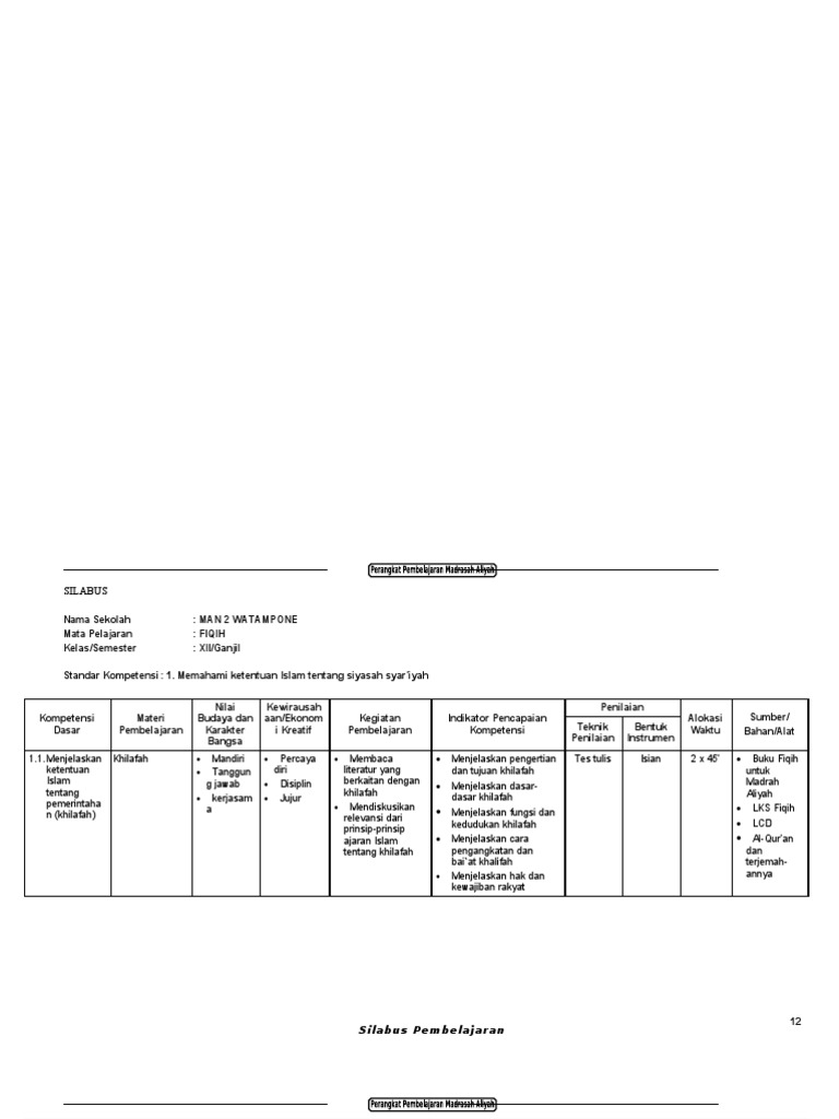 Silabus Fiqih Kls X,Xi,Xii / Doc Silabus Fiqih Ma Kelas X Ahmat Trisusilo Academia Edu / Rpp fiqih kelas xi 3.. Ipa, ips dan arab sma/ma kls xi ganjil genap kumpulan perangkat penjaskes sma/ma kls xi ganjil genap perangkat pembelajaran matematika sma/ma kls xii. Silabus adalah salah satu perangkat pembelajaran yang sangat di butuhkan oleh seorang guru mata pelajaran yang mana silabus menjadi dasar da. Dalam silabus fiqih ma kelas x, xi, xii ini memuat rincian kd, materi pembelajaran, dan aktivitas pembelajaran. Geografi sma kelas xii silabus geografi kelas xii rpp geografi kelas xii. Silabus ktsp mata pelajaran fiqih ini telah dimodifikasi, tetapi tetap mengacu pada kurikulum departemen agama.